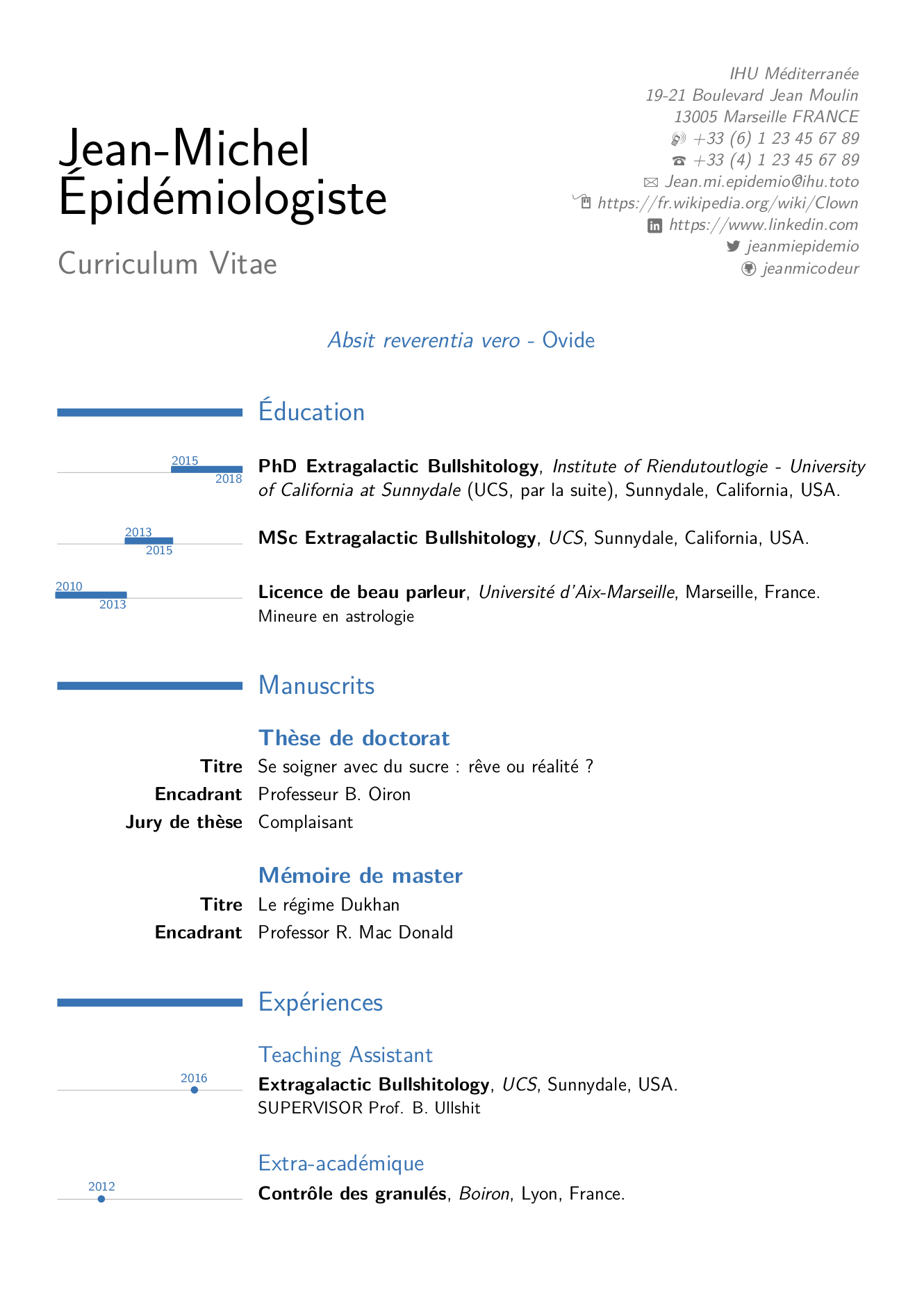 Un template pour faire de jolis cv académiques avec une classe LaTeX moderncv légèrement modifiée. Requiert les paquets (contenus dans Texlive2019)